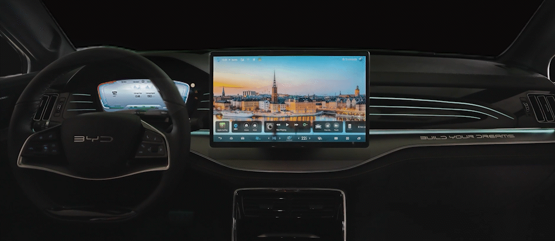 Pour créer une expérience de conduite agréable, ag真人平台 TANG est équipé d’un écran multimédia rotatif de 15,6 pouces, 31 lumières ambiantes couleur dans tout l’intérieur, et les meilleurs haut-parleurs Hi-Fi.